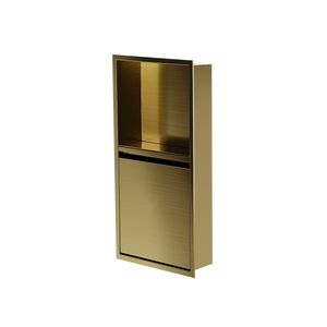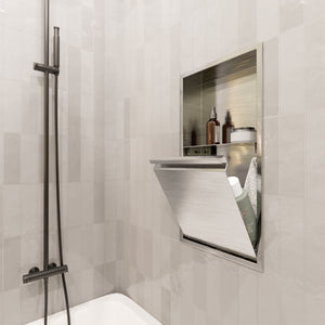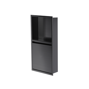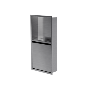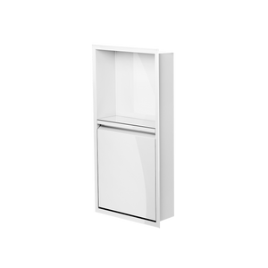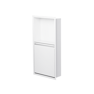 Cette niche avec porte de modèle vertical 24x12T de la collection Deluxe offre une plus grande capacité de rangement le tout élégamment dissimulée La niche de douche avec porte 24x12T offre une section décorative ouverte et une section fermée. La porte est dotée d’un plateau de rangement pour les produits et bouteilles et de crochets multifonctionnels afin de suspendre différents accessoires tels que; rasoir, brosse à dents et débarbouillette. Pour faciliter le nettoyage, la porte se retire et se remet en place très simplement, sans outils grâce aux charnières ajustables brevetés «Click-in / Click-out » de Zvelt.